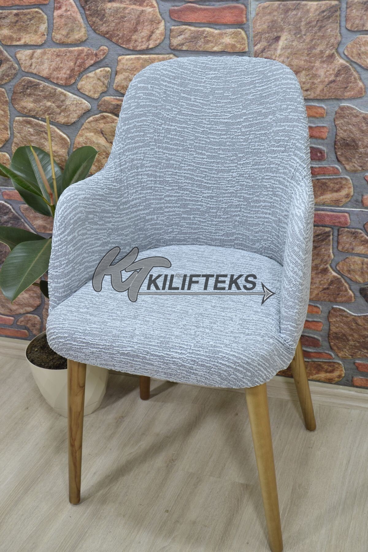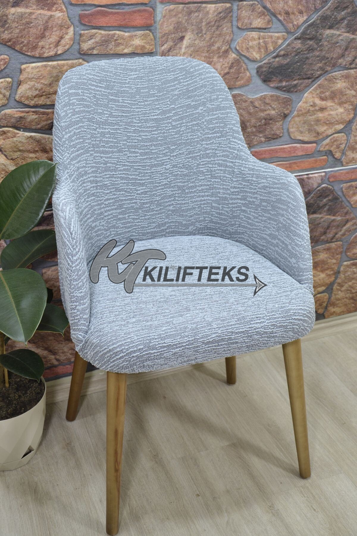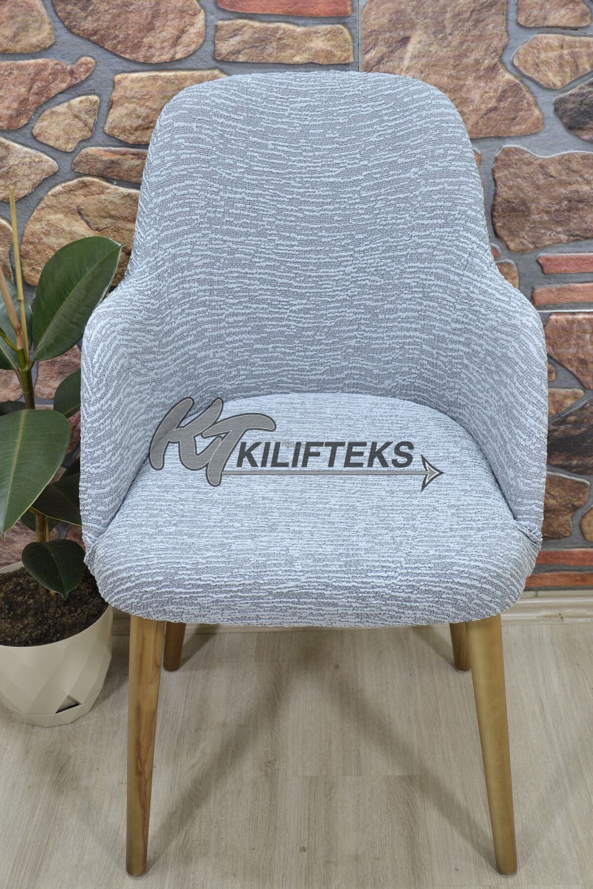 Büyük Kollu Sandalye Kılıfı Jakar Kumaş, Gri